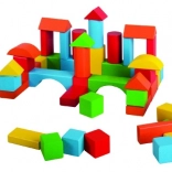 Kleurige houten bouwset met 50 hoogwaardig afgewerkte blokken in verschillende vormen voor kleine bouwers. Stimuleert fijne motoriek, creativiteit en ruimtelijk inzicht. Gemaakt van veilig hout, voldoet aan de EU-normen en is geschikt voor kinderen vanaf 2 jaar.