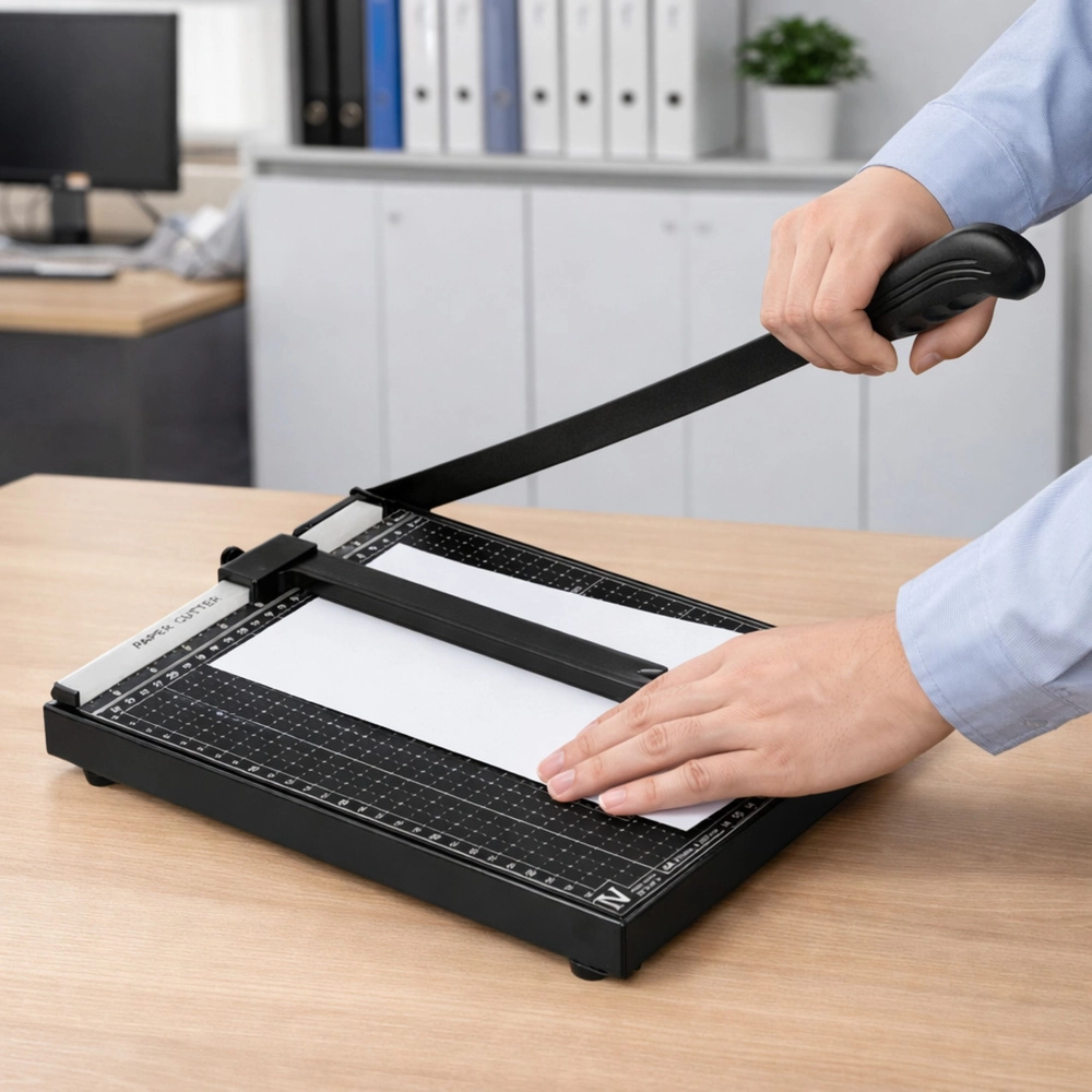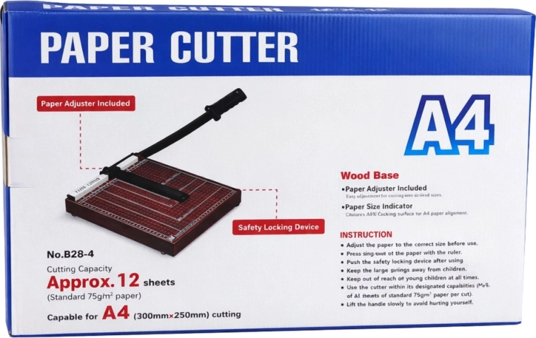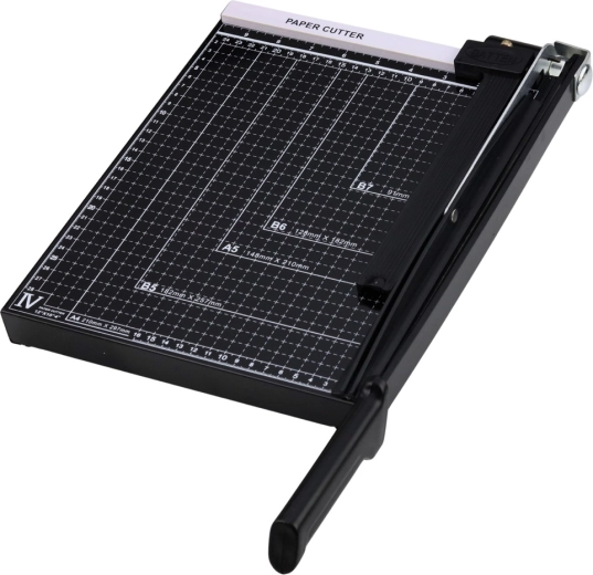 Deze A4-papierguillotine is ideaal voor kantoor, school, drukkerij en thuiswerkplaats. De stabiele basis met meetinlijnen en formataanduidingen helpt om het document precies uit te lijnen voor het snijden. De metalen snijarm met lange hefboom maakt een zuivere en rechte snede mogelijk zonder veel kracht.
