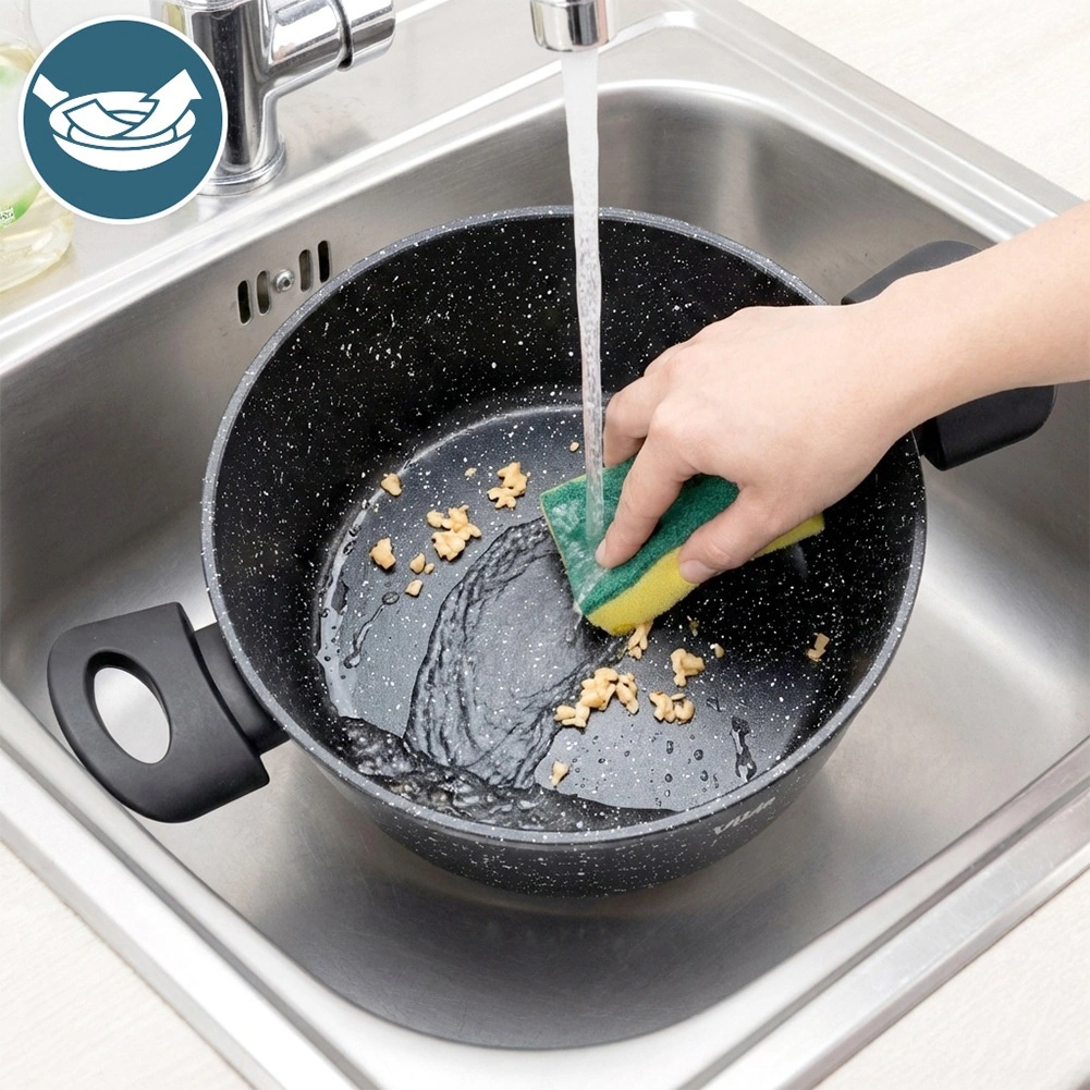 De pan is een uitstekende keuze voor soepen, sauzen en stoofgerechten. De meerlaagse bodem met inductieschijf zorgt voor een gelijkmatige warmteverdeling en snelle reactie op temperatuurschommelingen, zodat u tijd en energie bespaart. Eenvoudig onderhoud en de mogelijkheid tot reinigen in de vaatwasser maken het dagelijks gebruik in de keuken makkelijker.