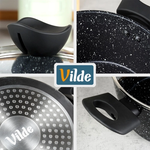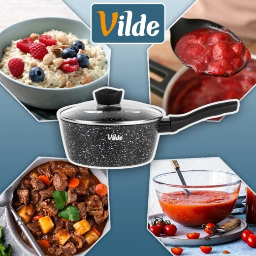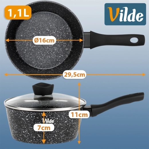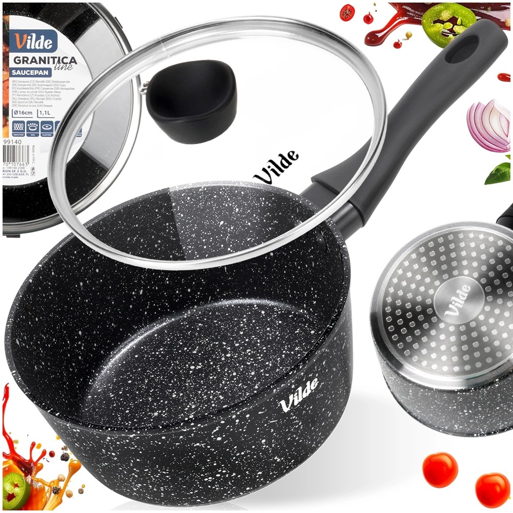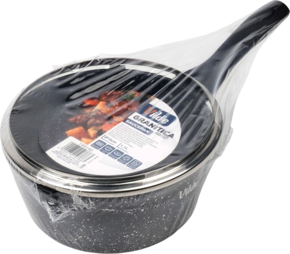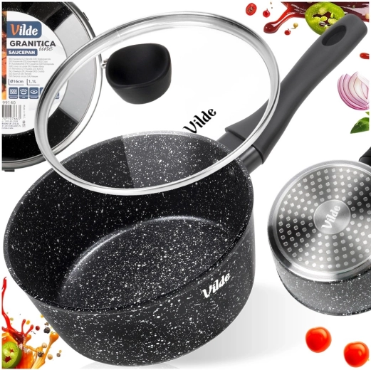 De compacte steelpan Vilde uit de lijn GRANITICA met een diameter van 16 cm en een inhoud van 1,1 l is ideaal voor dagelijks koken. Dankzij de antiaanbaklaag met granietafwerking bereid je gerechten met een minimum aan vet, het glazen deksel met stoomontsnappingsopening maakt controle tijdens het koken eenvoudig en de ergonomische soft-touch greep zorgt voor een veilige houvast. Geschikt voor alle soorten kookplaten, inclusief inductie en vaatwasser.