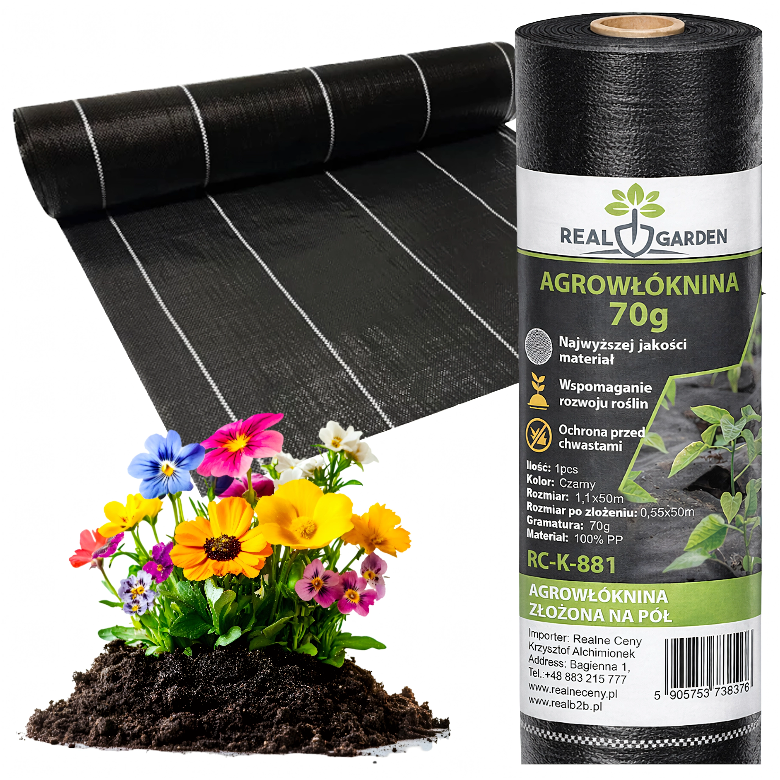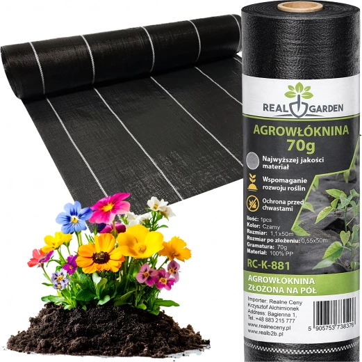 De rol wordt gevouwen geleverd voor eenvoudiger hantering (breedte van de gevouwen rol 55 cm, na uitvouwen 110 cm). Het materiaal is UV-gestabiliseerd voor een lange levensduur in de zon en scheurvast. Geschikt onder mulchschors, decoratieve stenen en als ondergrond voor kweekbakken en -potten.