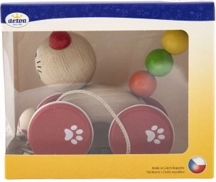 Dit houten trekspeeltje in de vorm van een kat zal elke kleine ontdekkingsreiziger aanspreken die de wereld van de eerste stapjes verkent. De muis rijdt grappig mee aan een touwtje, wat een extra dimensie van plezier toevoegt.