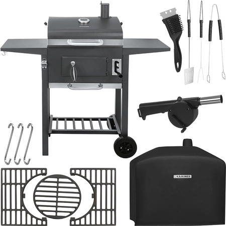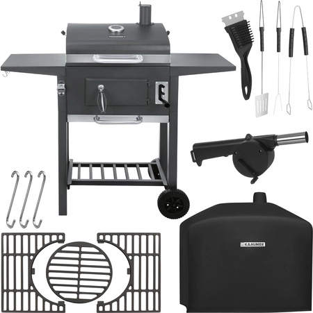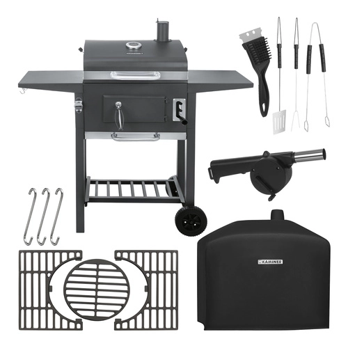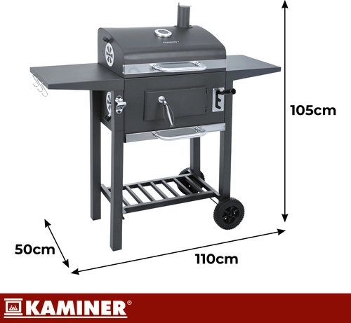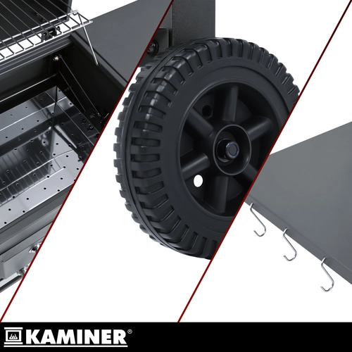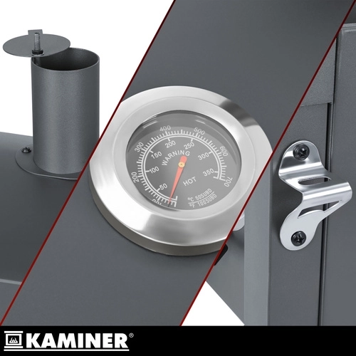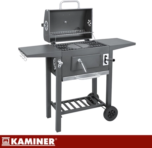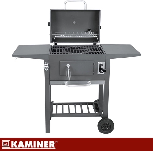 Ben je klaar met wankele grills die na één seizoen verkleuren en warmte slecht vasthouden? KAMINER is de oplossing. De constructie van dik plaatstaal (1 mm) met deksel en ingebouwde thermometer garandeert stabiliteit en thermisch comfort, terwijl het 3-delige gietijzeren rooster Cast Iron SafeGrate 3C met centrale opening stevige ondersteuning biedt voor vlees en het bedienen en reinigen vergemakkelijkt.