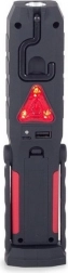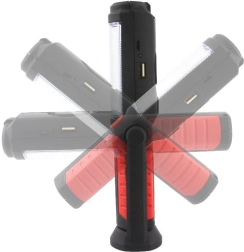 Deze multifunctionele werkplaatslamp is ideaal voor service, autoservice, kamperen en klussen in en om het huis. Het hoofd-COB LED-paneel biedt helder en gelijkmatig licht, de front-LED dient als zaklamp en het afzonderlijke rode noodlicht vergroot je zichtbaarheid bij pech op de weg.
