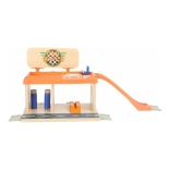 Kinderen kunnen gebruikmaken van de autoservice met helling en parkeren op het dak voor een echt authentieke speelervaring.