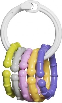 De lichte ring ligt prettig in de hand en de hangers zijn eenvoudig vast te pakken. Tijdens het spelen traint het kind de grijpreflex, behendigheid en het manipuleren van voorwerpen.