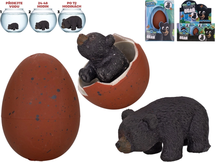 Het interactieve uitkomende ei met een zwarte beer spreekt alle nieuwsgierige kinderen aan. Plaats het ei gewoon in een bak met water en kijk hoe het binnen enkele uren barst en het beertje tevoorschijn komt. In de daaropvolgende dagen groeit het geleidelijk, wat de nieuwsgierigheid, het geduld en het observatievermogen van kinderen stimuleert.