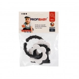 Praktische zwart-witte bijtringen in 4 vormen met geïntegreerde rammelaar en comfortabel handvat ondersteunen de ontwikkeling van het zicht en de fijne motoriek vanaf de geboorte. Gemaakt van gezondheidsveilige materialen, geschikt voor dagelijks gebruik.