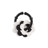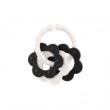 Ontdek bijtringen die speciaal zijn ontworpen voor de allerkleinsten – het contrasterende zwart-witte design trekt de aandacht van de baby en helpt het visuele waarnemen te stimuleren. Dankzij het praktische handvat liggen de bijtringen goed in kleine handjes en de rammelaar biedt zachte geluidsstimulatie.