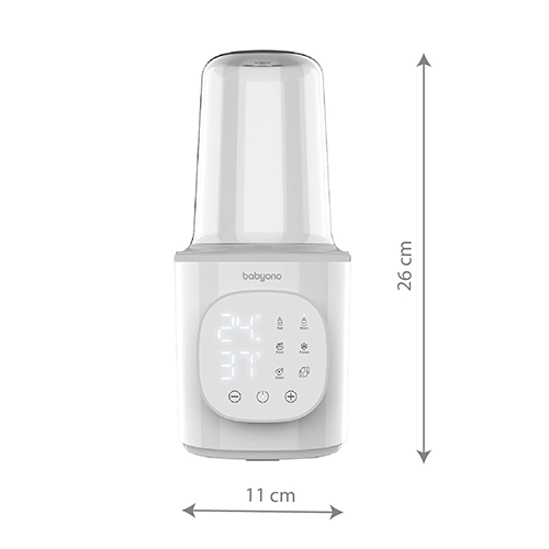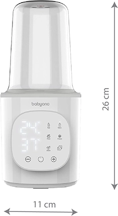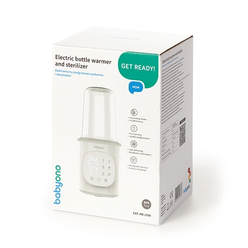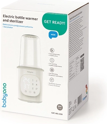 De praktische elektrische 6-in-1 flessenwarmer en sterilisator van BabyOno bespaart tijd en ruimte in de keuken. Biedt snelle opwarming in 2,5 minuut, temperatuurbehoud tot 24 uur, veilig ontdooien en effectieve stoomsterilisatie van flessen, spenen en accessoires. Een intuïtief touchpaneel met groot LED-display en een nauwkeurige thermostaat zorgen altijd voor de juiste temperatuur zonder oververhitting.