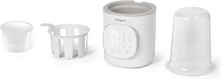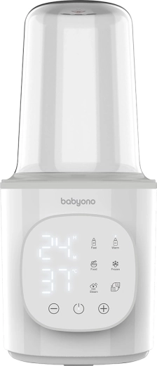 De BabyOno 6-in-1 is een multifunctionele flessenwarmer en sterilisator die snelle opwarming van melk, temperatuurbehoud, opwarming van potjes, veilig ontdooien en stoomsterilisatie aankan. Dankzij het vermogen van 200 W en de nauwkeurige temperatuurregeling verwarmt hij gelijkmatig en comfortabel – voor de meeste soorten babyflessen en potjes.