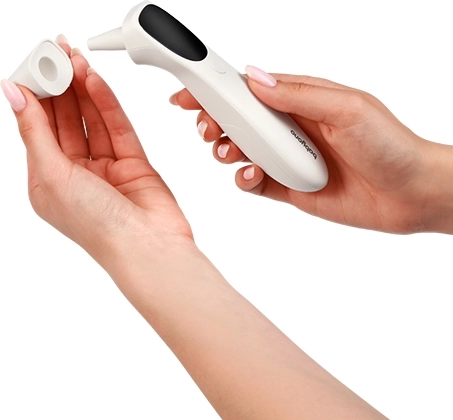Eenvoudige, snelle bediening met één knop. Kies contactloze meting op het voorhoofd of de nauwkeurige oormodus en ontvang het resultaat in 1 s.
