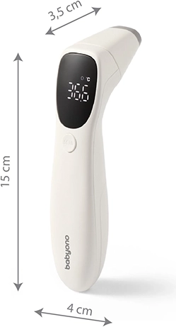 De contactloze infraroodthermometer BABYONO maakt hygiënische en milde meting mogelijk op het voorhoofd en in het oor. Met één druk op de knop krijgt u binnen 1 seconde een nauwkeurig resultaat, zodat u de temperatuur van baby’s, kinderen en volwassenen op elk moment van de dag en nacht eenvoudig kunt controleren.