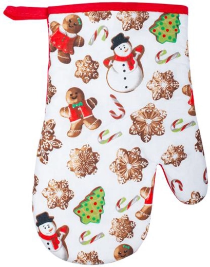Creëer thuis de echte feestelijke gezelligheid met deze ovenwant met peperkoekmotief. Dankzij de praktische afmetingen 19 × 27 cm ligt hij prettig in de hand en maakt hij het veilig dragen van bakplaten, braadsledes en pannen gemakkelijker. Het kerstdesign vult je keuken perfect aan en maakt elke bakliefhebber blij.