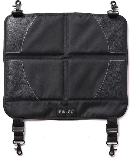 Vul de stoelbescherming aan met een afsluitbare organizer met vakken voor het overzichtelijk opbergen van speelgoed, luiers of flesjes onderweg.