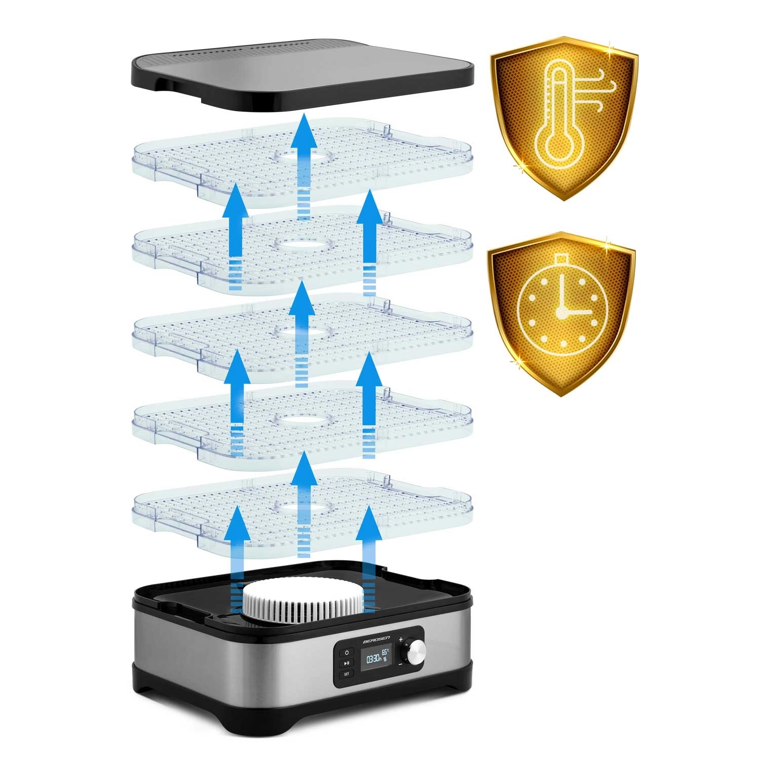 Voedsel droger Berdsen zilver, 10 l, 5 trays, 35–70 °C