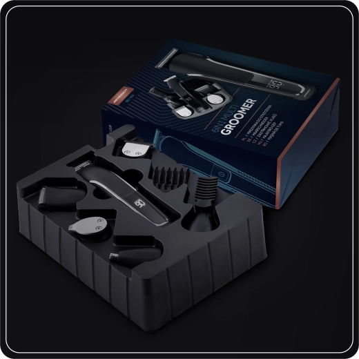 - Complete verzorging 6‑in‑1 – stylen, contouren, glad scheren en bodygrooming.