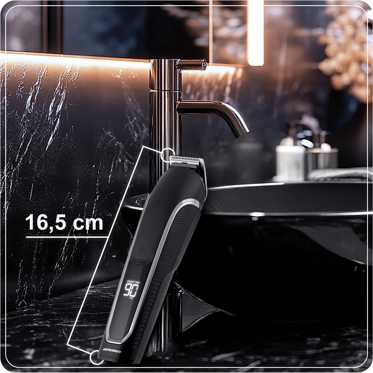BERDSEN Barber Master is een complete 6‑in‑1 oplossing voor het verzorgen van haar, baard en lichaam. Een krachtige motor, hoogwaardige stalen messen en een LCD‑display met batterij‑ en toerentalindicator geven je volledige controle bij elke beweging. Met tot 90 minuten draadloos gebruik en snel USB‑C opladen style je nauwkeurig altijd en overal.