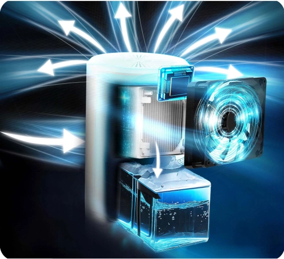 De thermo-elektrische Peltier-technologie zonder compressor zorgt voor een geluidsniveau tot slechts 34 dB en een laag vermogen van 22,5 W. Ideaal voor slaapkamer, badkamer en thuiskantoor.