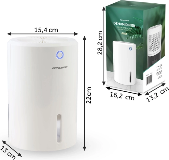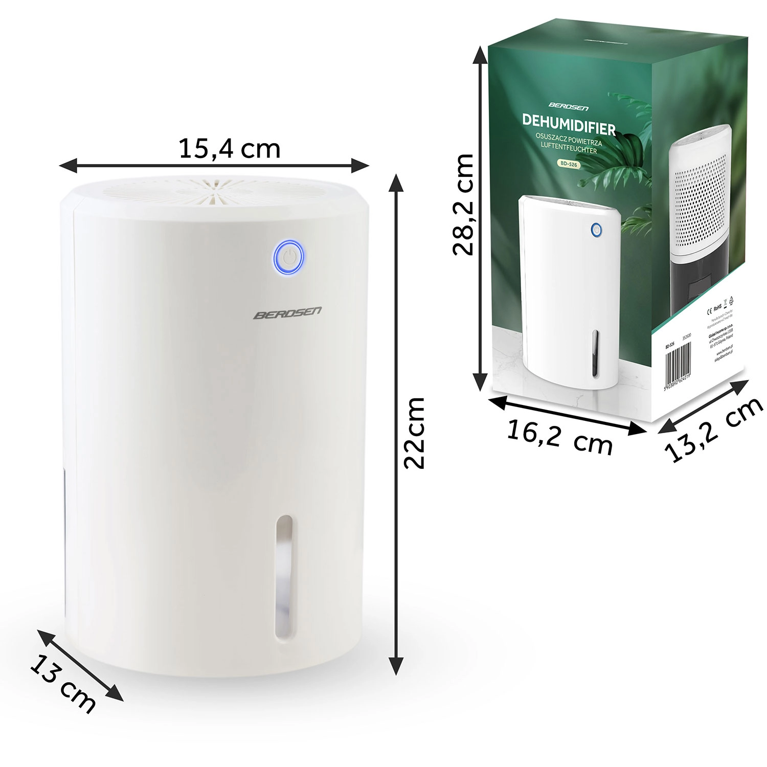De compacte luchtontvochtiger Berdsen BD-526 zorgt voor een gezond binnenklimaat. Hij biedt een zeer stille werking tot 34 dB, laag energieverbruik van 22,5 W en een grote watertank van 800 ml. Dankzij de Peltier-technologie verlaagt hij doeltreffend de luchtvochtigheid, beperkt schimmel, bacteriën en geurtjes en helpt hij wasgoed sneller te drogen in badkamers, wasruimtes en kleinere kamers.