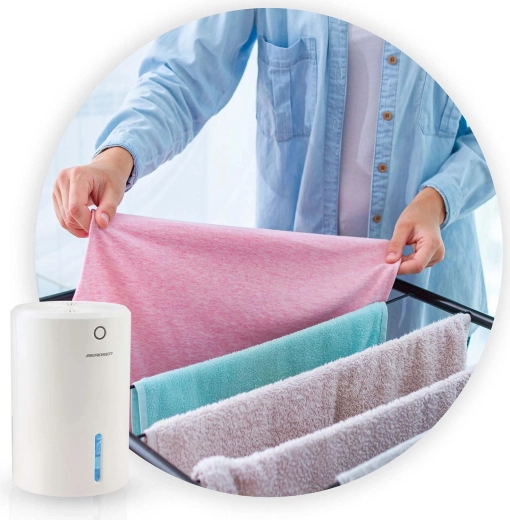- Ondersteuning bij drogen van wasgoed: versnelt de verdamping van vocht en beperkt geurtjes.