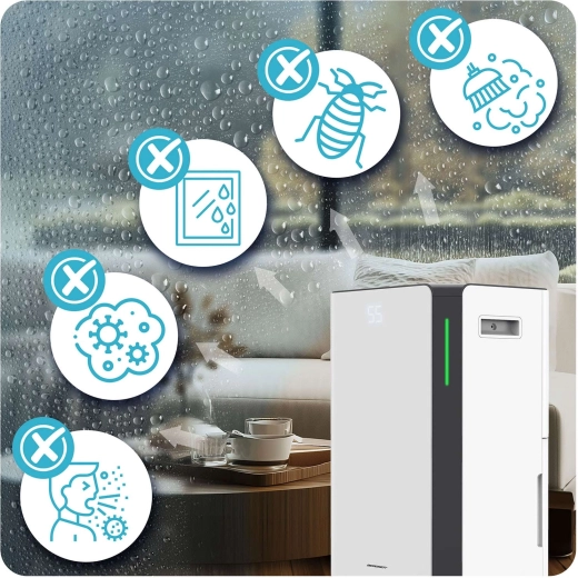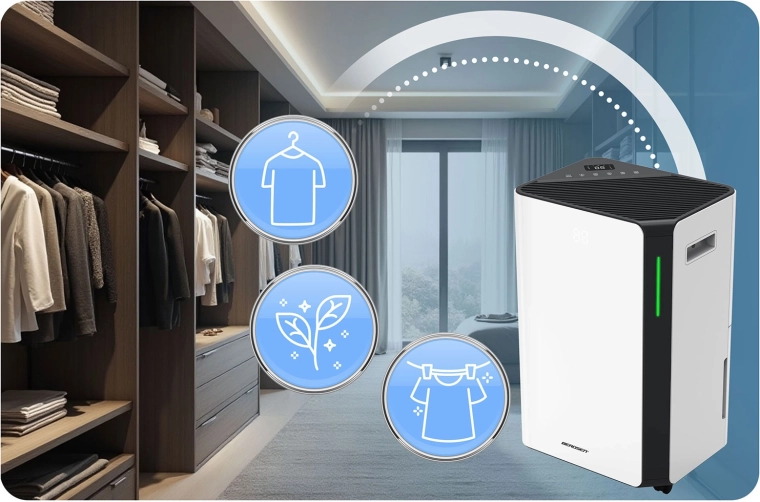 Het model BERDSEN BD-532 verlaagt de luchtvochtigheid efficiënt via condensatie, waardoor schimmel-, zwam- en bacterievorming wordt beperkt en muffe geuren worden geëlimineerd. Ideaal voor appartementen, kantoren en recreatiewoningen. De geïntegreerde hygrostaat behoudt het gekozen vochtigheidsniveau binnen 30–80% RV.