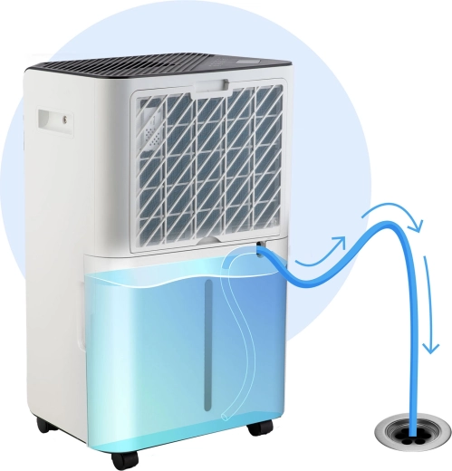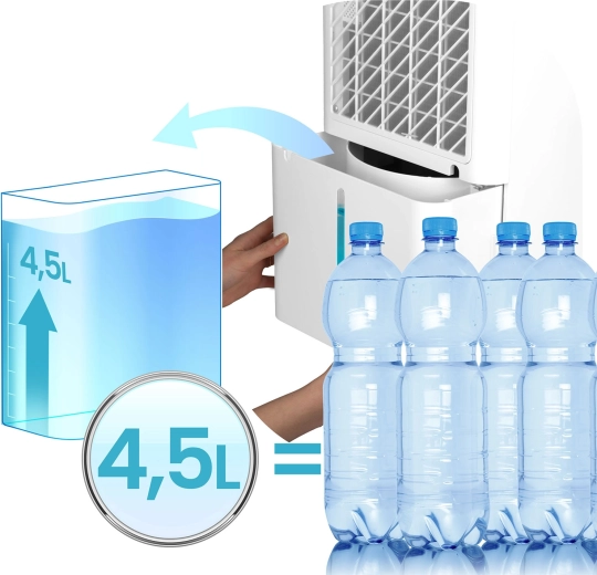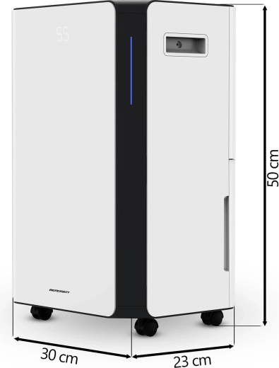 Kies tussen de ruime tank van 4,5 l en continue waterafvoer (slang inbegrepen). Het afwasbare voorfilter vangt stof en allergenen; het milieuvriendelijke koelmiddel R290 is vriendelijk voor het milieu. Het apparaat helpt ook wasgoed sneller te drogen en is dankzij het handvat en de wielen eenvoudig te verplaatsen.