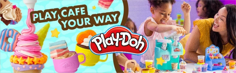 De Play-Doh Kleurrijk Café-set verandert de kinderkamer in een klein café vol verbeelding. Kinderen kunnen “koffies”, thee, frappés of milkshakes van klei maken, ze versieren met slagroom en serveren op een transparant rek. Dankzij de rijke accessoires en vormpjes voor koekjes, muffins en donuts is er keer op keer plezier gegarandeerd.