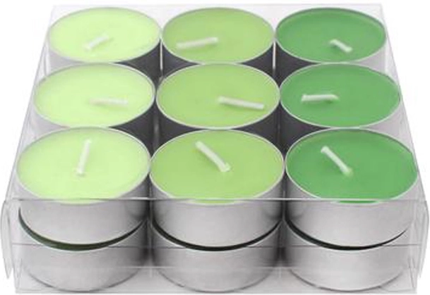 Ontdek de charme van de theelichtjes PROVENCE met een verfrissende appelgeur. Deze kaarsjes creëren een aangename sfeer tijdens een avondje thuis, in bad of bij een feestelijk diner. Dankzij het compacte formaat passen ze perfect in houders en lantaarns, waar ze het interieur gelijkmatig verlichten.