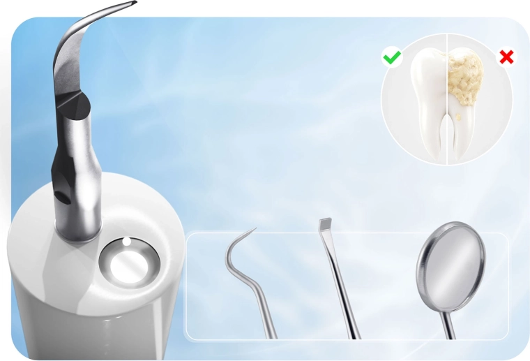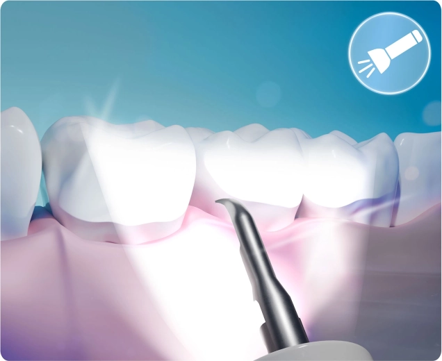 Professionele gebitsreiniging thuis – de BERDSEN BD-251 combineert sonische en ultrasone technologie voor gerichte verwijdering van tandsteen, ook op moeilijk bereikbare plaatsen. Het LED-licht verbetert de zichtbaarheid, terwijl de veiligheidsstop-sensor automatisch stopt bij aanraking van zacht weefsel (tandvlees/tong) voor maximale veiligheid.