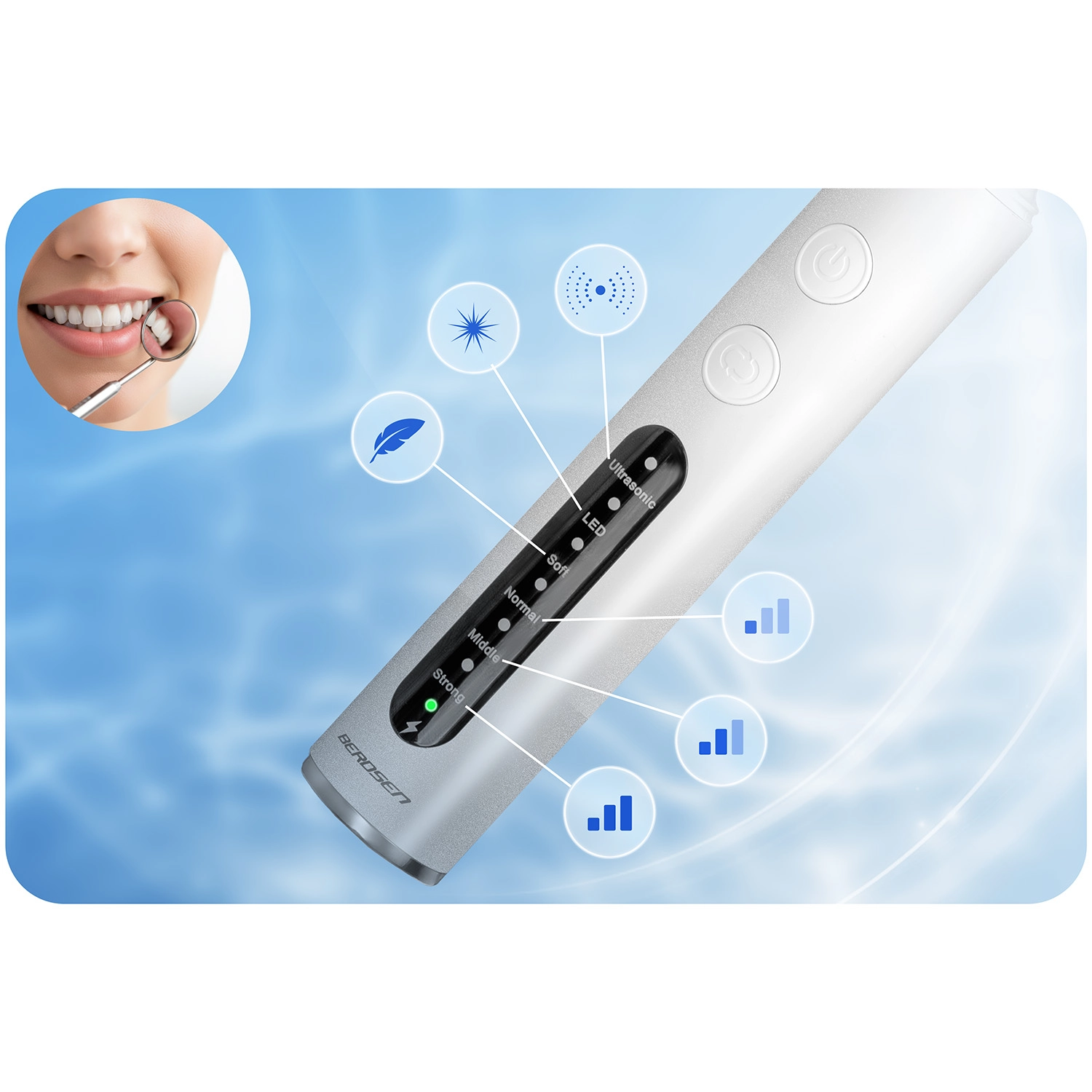 Ultrasone tandsteenverwijderaar met 4 standen en LED BERDSEN BD-251