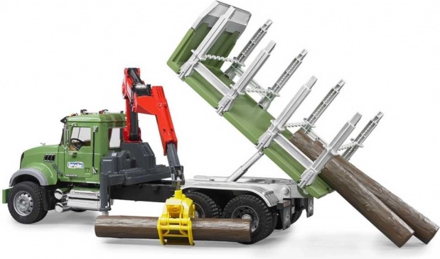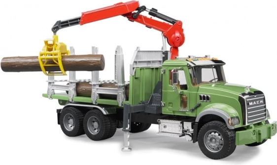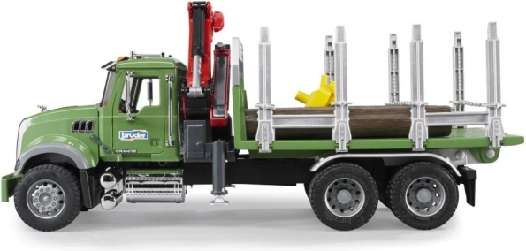 Het robuuste model van de BRUDER MACK GRANITE vrachtwagen is ideaal voor realistisch spel rond houtkap en -transport. De transparante voorruit van onbreekbaar polycarbonaat, de openende cabine en de motorkap met zicht op de motor geven het model een authentieke uitstraling. Voor stabiliteit tijdens het laden zorgen de uitschuifbare steunpoten, terwijl de draaibare kraan met grijper eenvoudig te bedienen is.