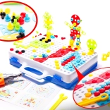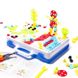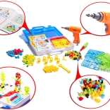 De set bevat kleurrijke schroeven en onderdelen die kinderen aanspreken en helpen bij de ontwikkeling van hun motorische vaardigheden.