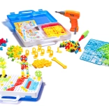 Fantastische constructieset voor de kleine klusjesman! De set bevat 237 stukken waarmee verschillende vormen en modellen gemaakt kunnen worden. Kinderen kunnen spelen met kleurrijke schroeven en met behulp van de boormachine ervaren hoe het is om een echte bouwer te zijn.