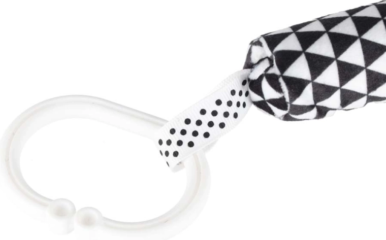 De praktische clip/ring maakt snel vastklikken aan de duwbeugel van de kinderwagen, het autostoeltje of de rand van het ledikant mogelijk. Zo blijft het speeltje altijd binnen handbereik.