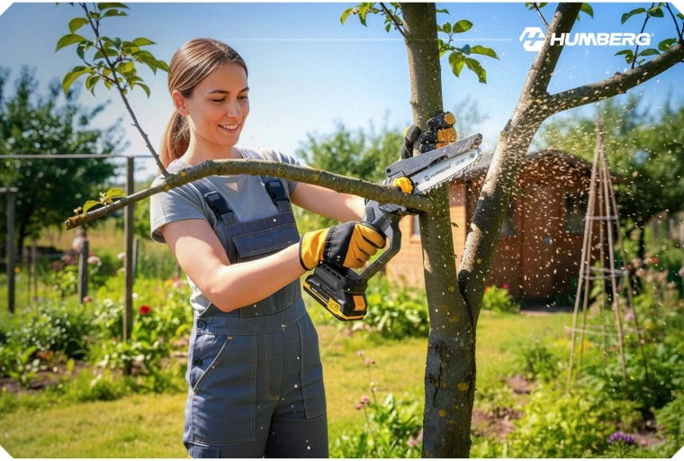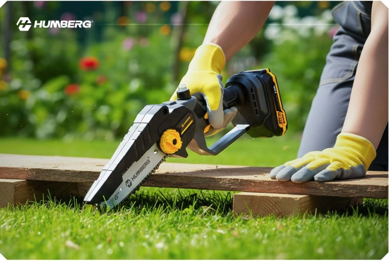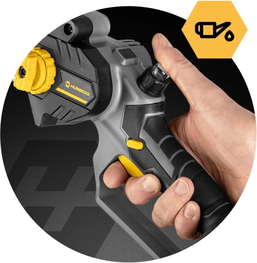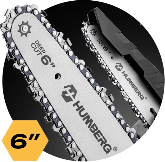 De Humberg accu mini-zaag combineert een borstelloze motor met tot 21.000 t/min voor stabiele prestaties zonder vastlopen. Dankzij automatische oliesmering en een kettingbeschermer zaag je snel en veilig. Gereedschapsloze kettingspanning via het zijwieltje verkort de voorbereiding – gewoon draaien en zagen.