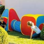 Creëer voor kinderen hun eigen avonturenwereld. De set van drie tenten met tunnel stimuleert actieve beweging, fantasie en spelen met vriendjes. Dankzij het pop-up systeem vouwen de tenten zich binnen enkele seconden uit en na het spelen berg je ze eenvoudig weer op.