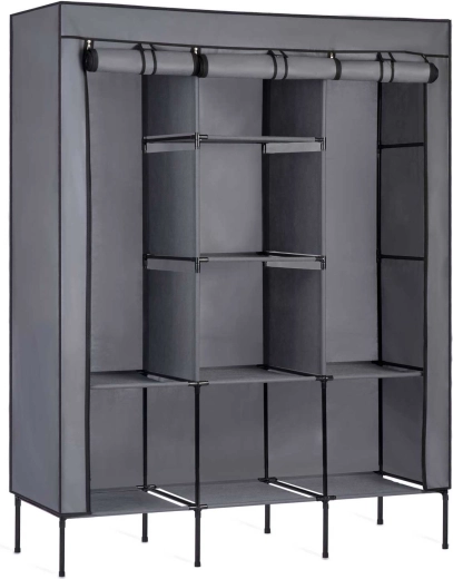 Houd orde in kleding, accessoires en seizoensspullen met de textiele kast Massido. Dankzij de combinatie van planken en hangruimte bergt u gemakkelijk overhemden, jurken en gevouwen truien op. De stevige hoes beschermt tegen stof en vocht, terwijl de ritssluiting snelle toegang biedt.