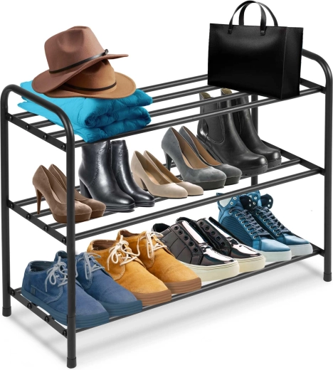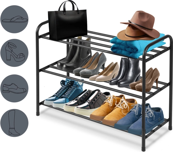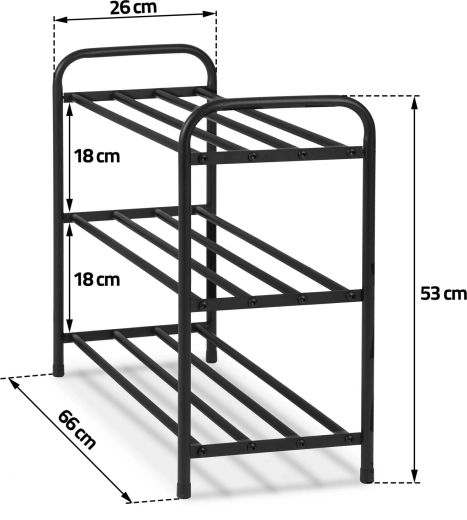 Drie ruime niveaus bieden plaats aan schoenen voor het hele gezin en houden ze overzichtelijk van de vloer en zonder rommel.