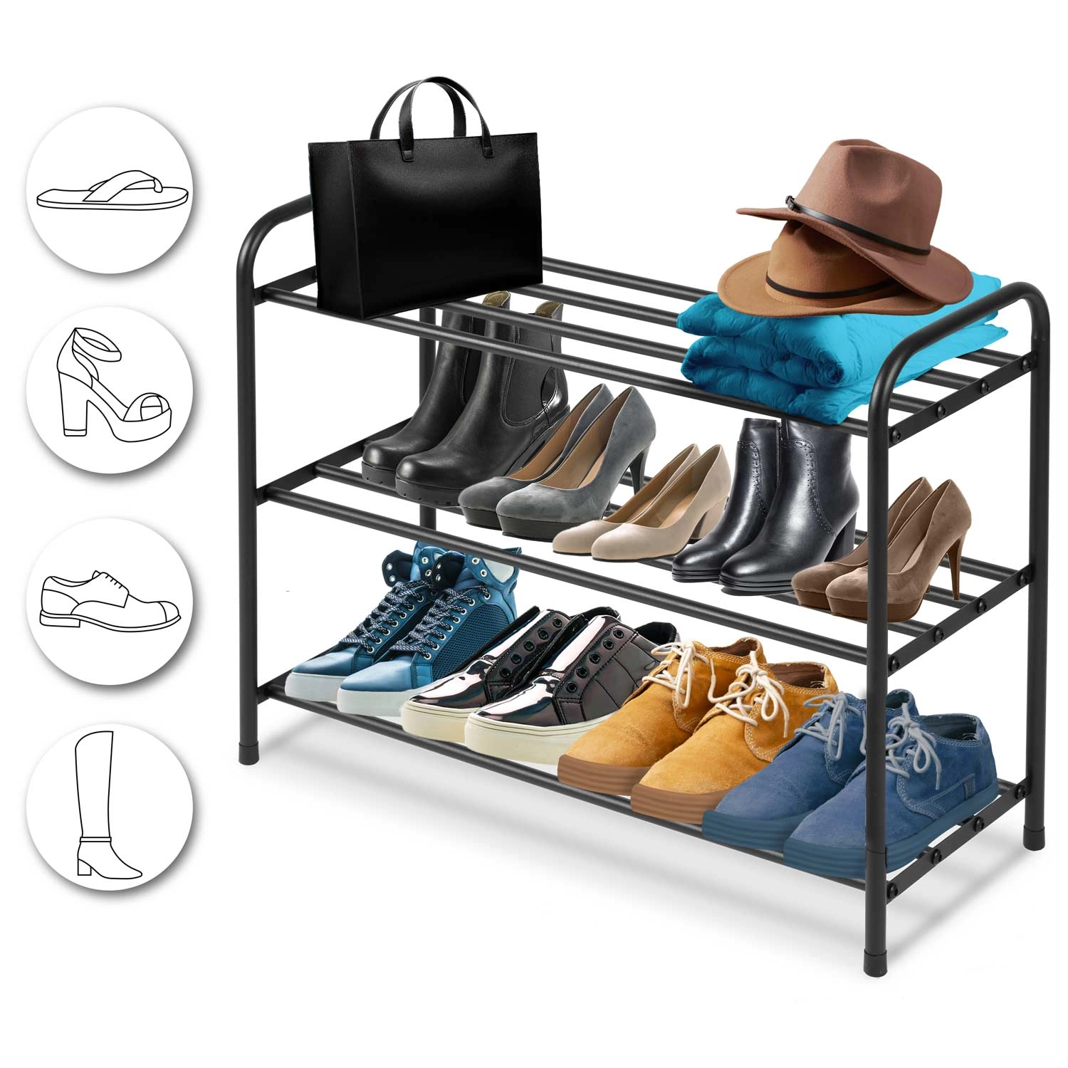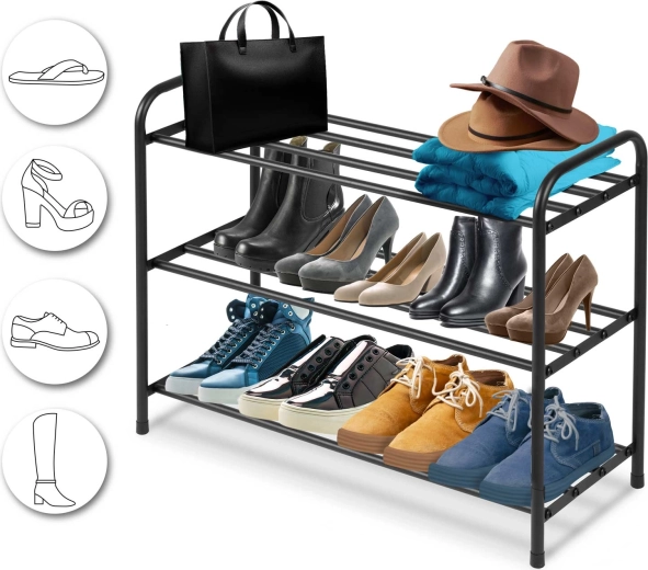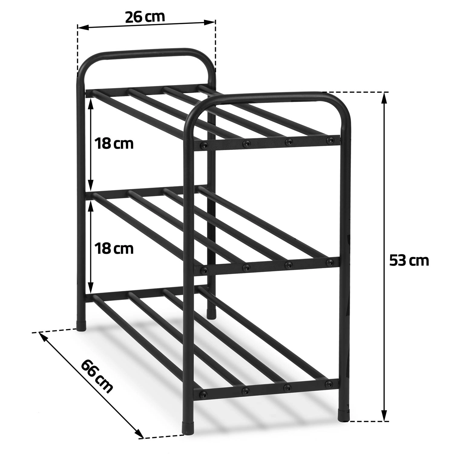 Het Massido schoenenrek met drie niveaus helpt je schoenen overzichtelijk geordend en altijd binnen handbereik te houden. Het stabiele metalen frame en de open roosters zorgen voor een betere luchtstroom, waardoor schoenen droog en geurvrij blijven en niet vervormen.