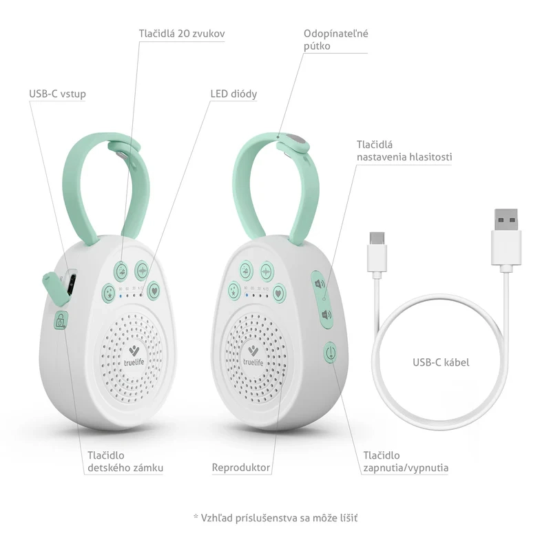TrueLife BabyTone S3 slaaptrainer, USB-C kabel, handleiding