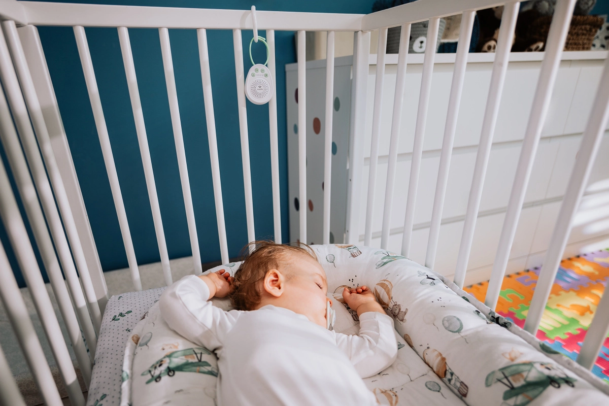 Eenvoudig te bevestigen aan wieg, kinderwagen of autostoel. De ideale helper thuis en onderweg voor rustige slaap overal.