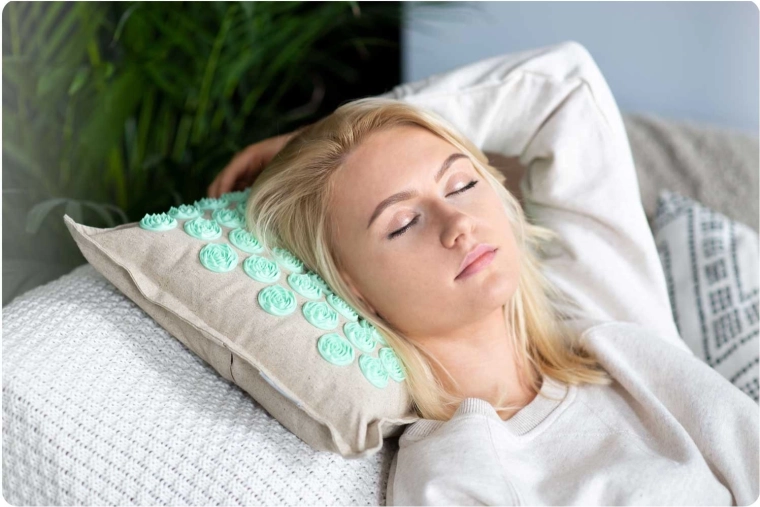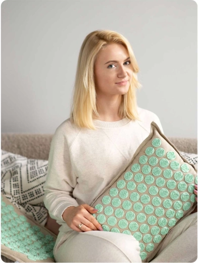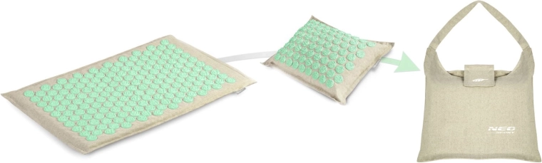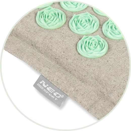 Op de mat bevinden zich 181 en op het kussen 76 rozetten met fijne puntjes die drukpunten stimuleren, de doorbloeding bevorderen en spierspanning verminderen voor snellere recuperatie.