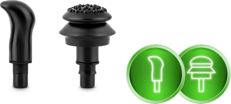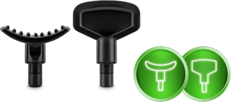 Kies precies het opzetstuk dat jouw spieren nodig hebben: de vork voor het gebied rond de wervelkolom en de achillespees, de bal voor grotere spiergroepen, de platte kop voor stijve zones, de kogel voor intense triggerpoint‑massage en andere speciale vormen voor de pols, gevoelige plekken of brede strijkbewegingen.