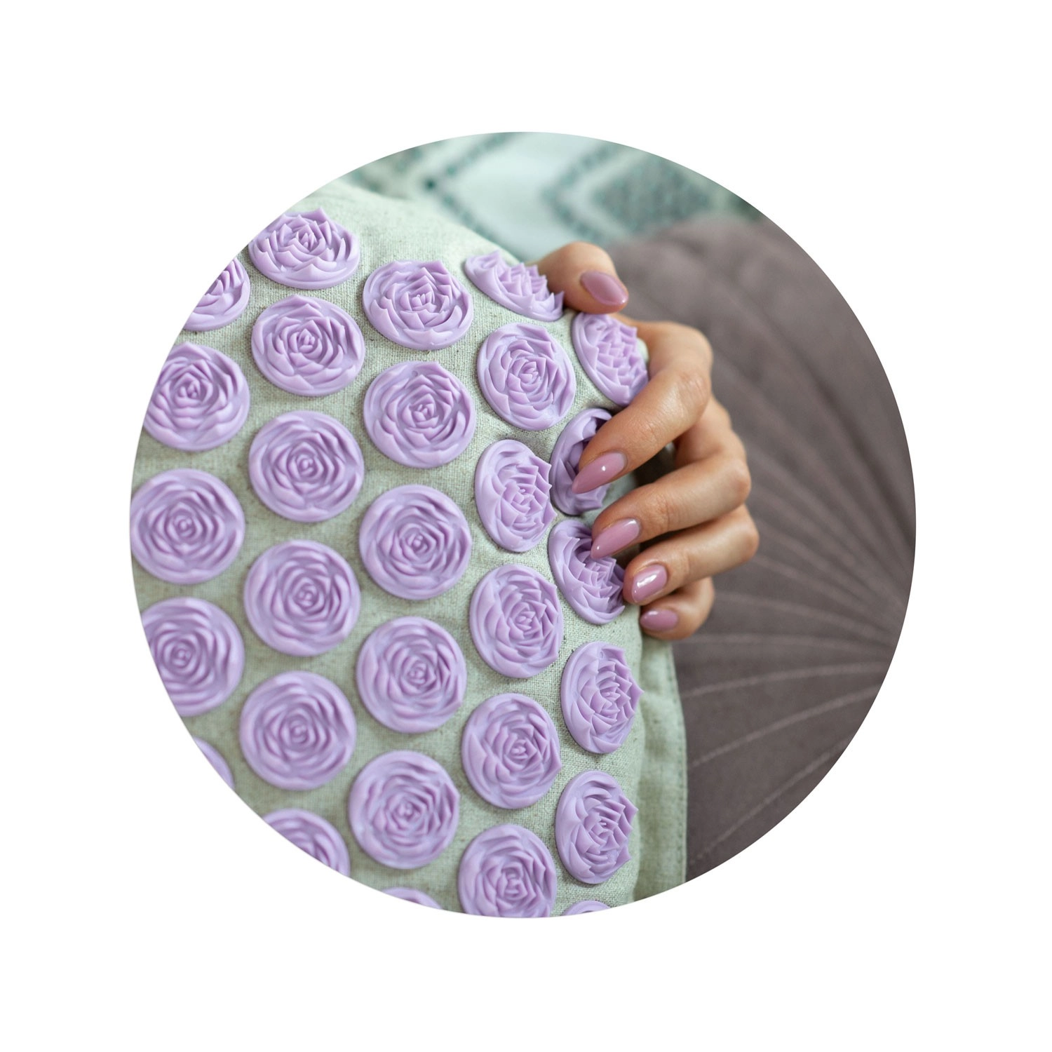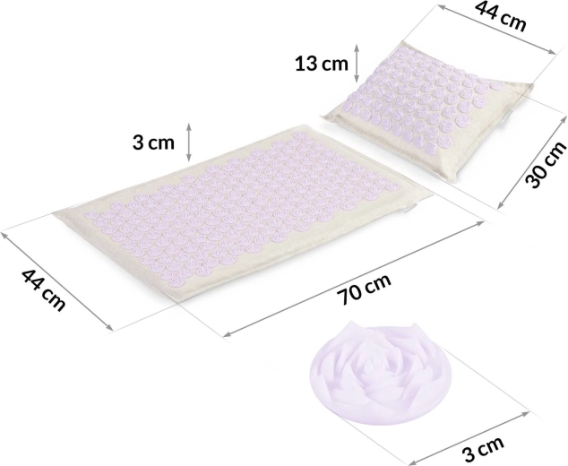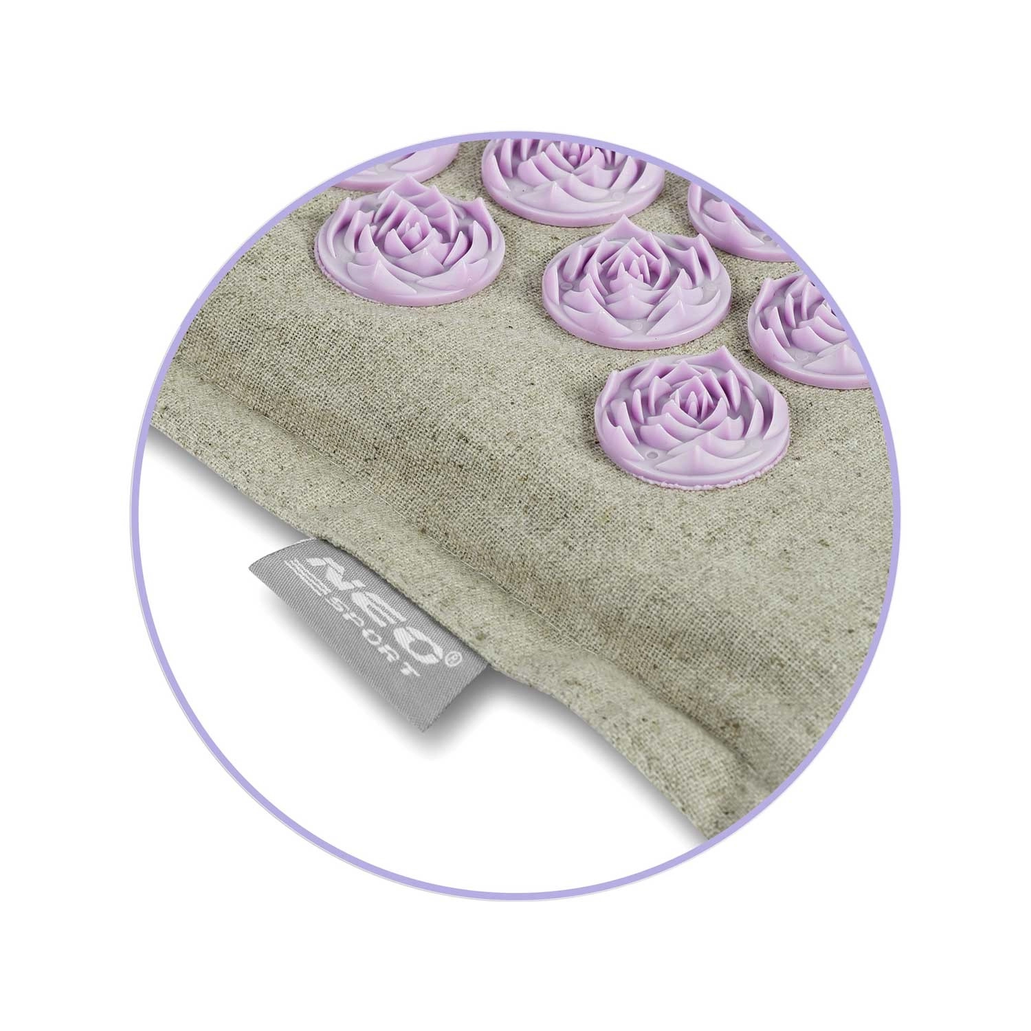 De dicht geplaatste lavendelkleurige schijven stimuleren drukpunten over de volledige lengte van de rug en in de nekomgeving. Ze bevorderen de doorbloeding, ontspannen de spieren en helpen bij rug- en nekpijn en bij stress.