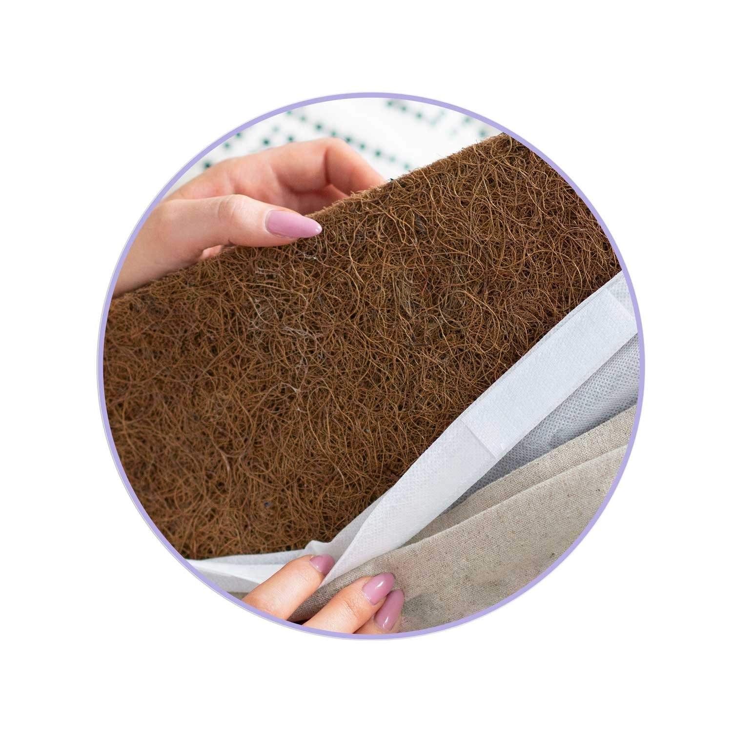 Een praktische draagtas is inbegrepen, zodat je de mat gemakkelijk meeneemt naar werk, training of op vakantie. De hoes heeft klittenband voor snel afnemen en reinigen. De natuurlijke kokosvezelvulling is luchtig, hygiënisch en blijft langdurig in vorm.