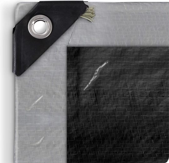 Ideaal voor het afdekken van boten, lading op een aanhanger, bouwmaterialen of hout. Tweezijdige zilver‑zwarte uitvoering voor praktisch gebruik.