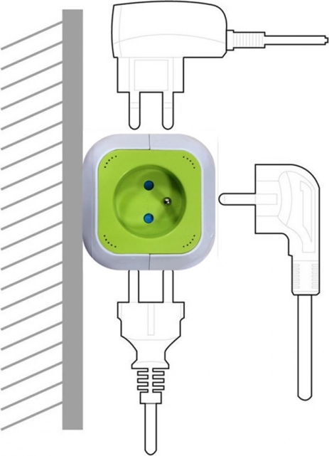 De kubusvorm met 4 stopcontacten op verschillende zijden bespaart ruimte en maakt het mogelijk om ook grotere stekkers comfortabel aan te sluiten zonder elkaar te blokkeren.