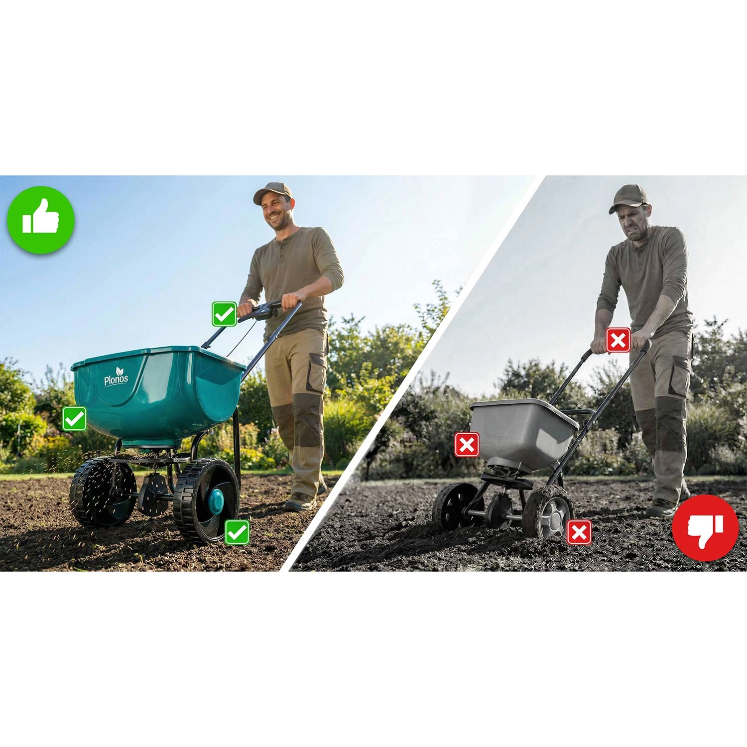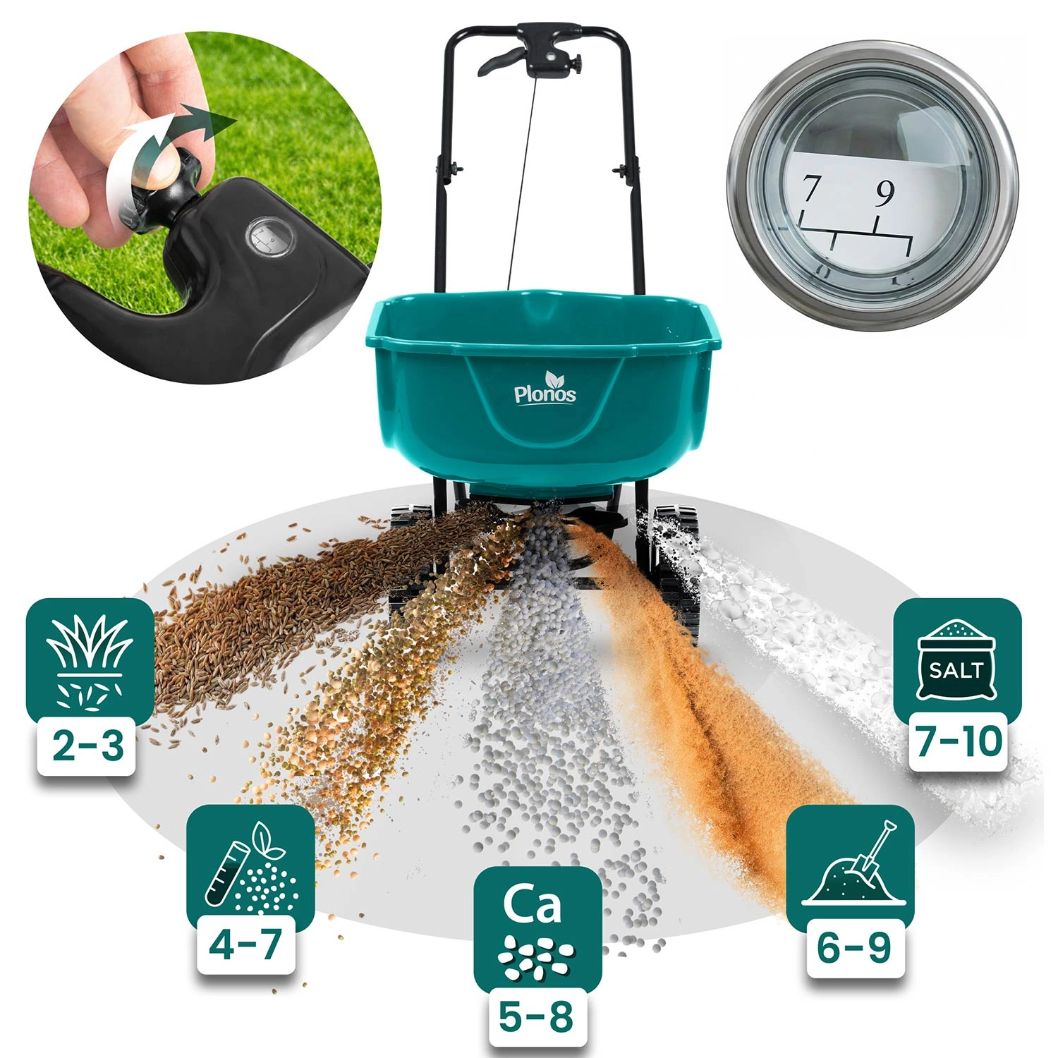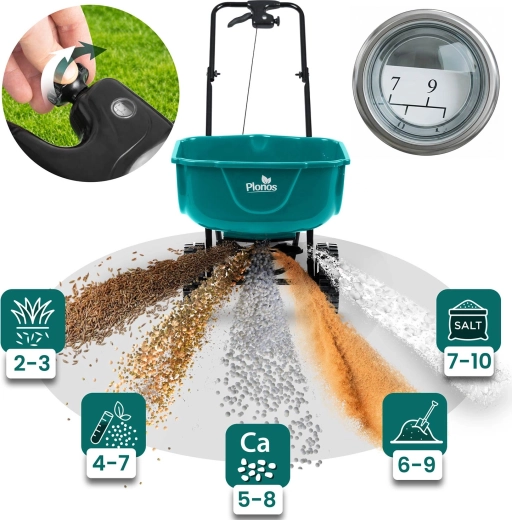 De Plonos-strooier van 27 l is een betrouwbare hulp voor gelijkmatige dosering van zaad, korrelmeststoffen, strooizout en zand. Dankzij de instelbare dosering in 10 stappen en de strooibreedte tot 3 meter bedekt u het oppervlak snel, nauwkeurig en zonder verspilling. De ergonomische handgreep met geïntegreerde regeling en stophendel biedt volledige controle over de materiaaldoorvoer.