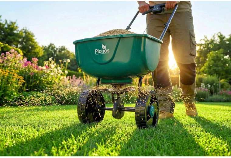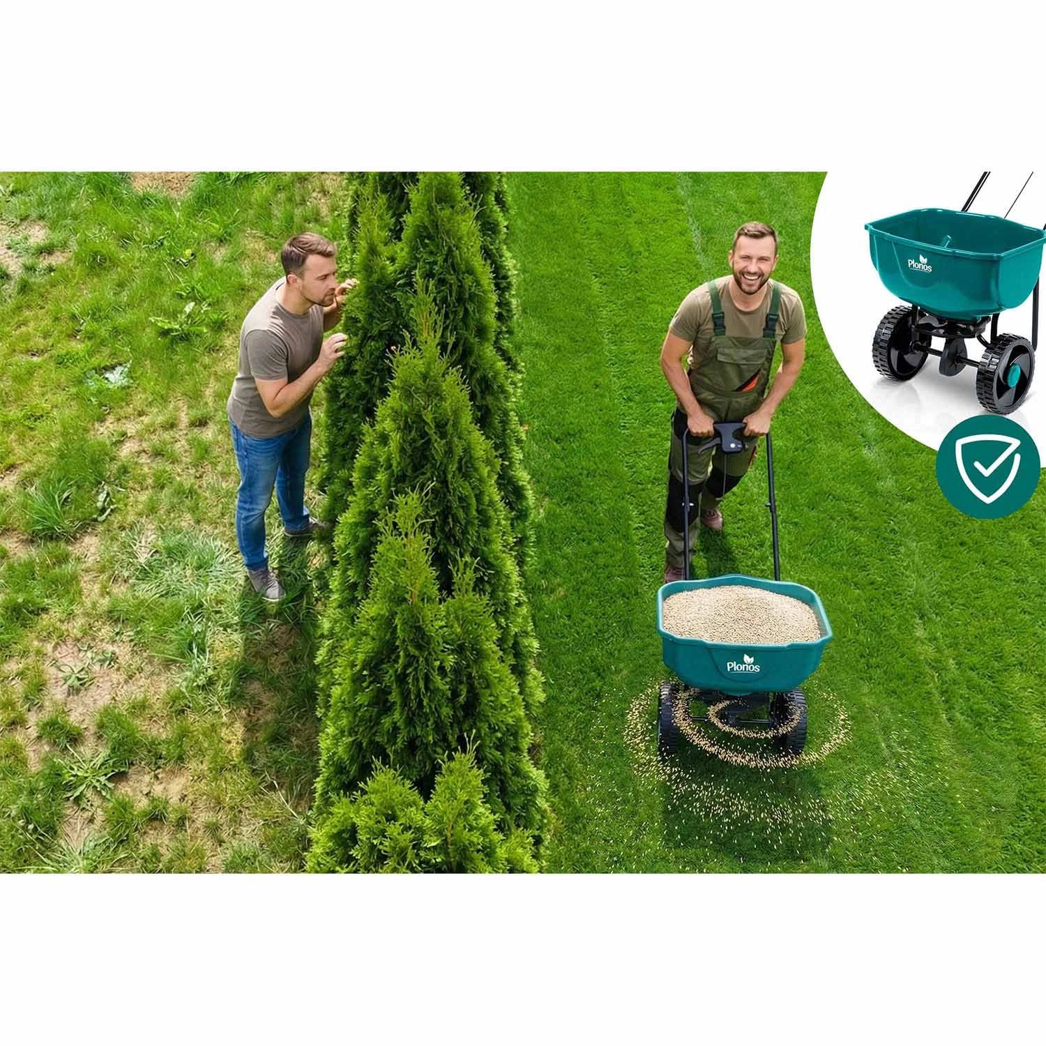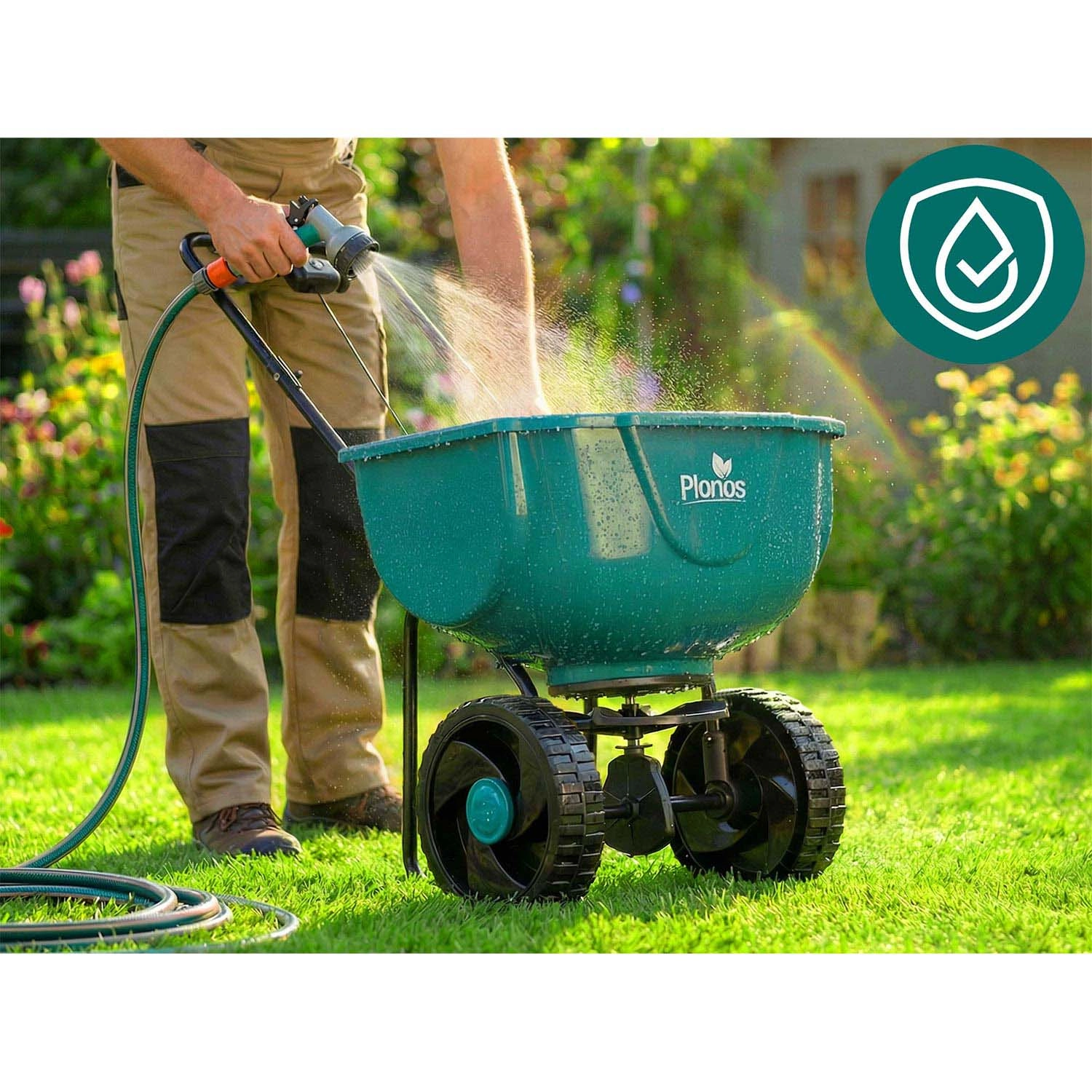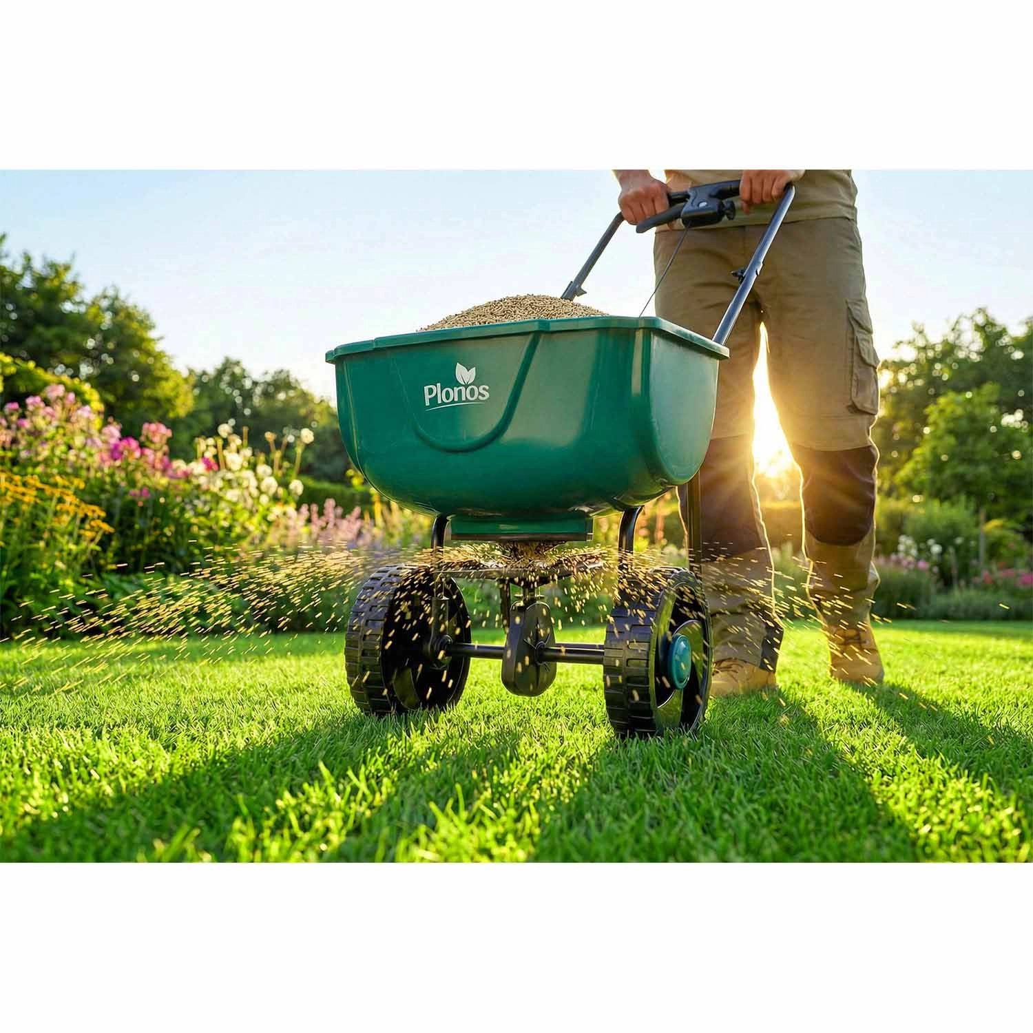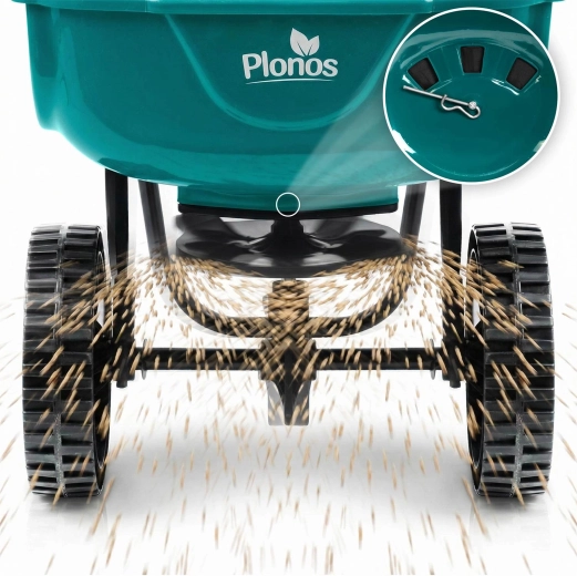 Krachtige handmatige strooier van Plonos met een capaciteit van 27 l voor het hele jaar door – voor graszaad, meststoffen, zout en zand. Biedt nauwkeurige doseringsregeling in 10 niveaus, een strooibreedte tot 3 m, een ergonomische handgreep met doorstroomregeling en een directe stop. Duurzame constructie en eenvoudige reiniging besparen tijd en materiaal.